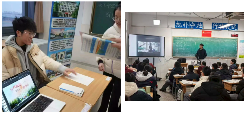 通过分享在北航的学习日常、科研经历以及丰富多彩的校园活动,队员们让同学们更加直观地了解大学生活,也拉近了大家与北航之间的距离。现场交流气氛热烈,掌声不断,宣讲活动取得了良好的效果。