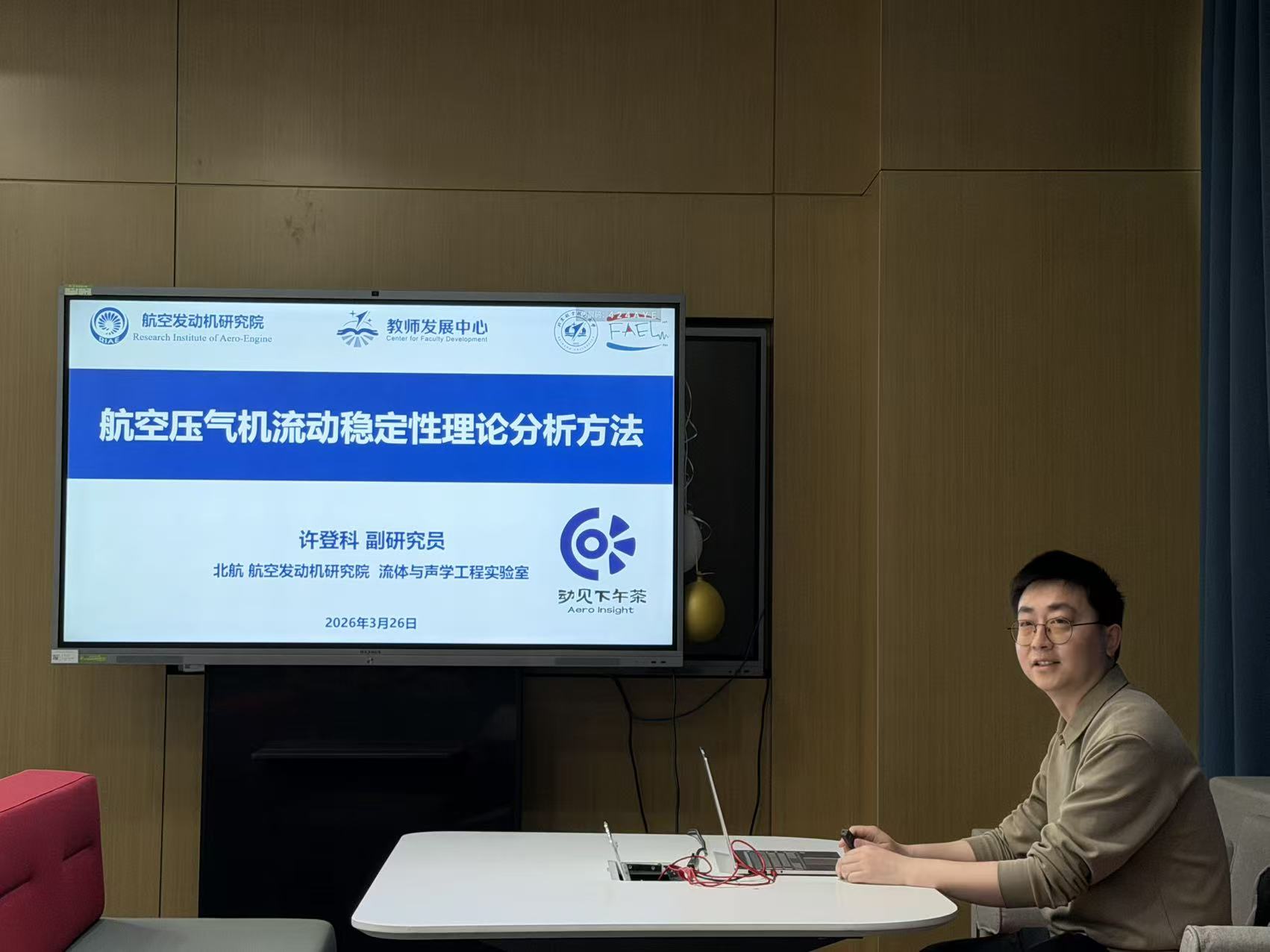 2026年3月26日中午,依托北航教师发展中心“锐志沙龙”平台,由北航航空发动机研究院教师发展中心与航发院工会联合主办的“动见下午茶”第五期青年教师学术交流会,在沙河校区主楼C座10层水吧顺利举办。本次活动围绕“航空发动机流动稳定性研究”与“航空发动机排放污染物及智能故障预测相关研究”主题展开了交流讨论。活动吸引了来自航空发动机研究院、能源与动力工程学院的二十余名教师和学生参与。活动由航空发动机研究院副研究员安强主持。